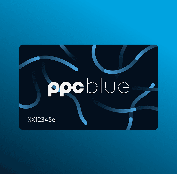 Open the PPC blue app, go to RFID cards section, choose “Activate your RFID card” and enter the RFID card serial number in the following format: XX123456. You may find the serial number on the bottom left part of the card.